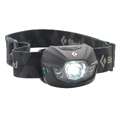 Die Black Diamond Spot glänzt wahlweise mit zwei weißen LED für den Nahbereich (lesen, arbeiten), zwei roten LED (für gute Nachtsicht) oder einer fokussierten, weit reichenden High Power LED mit 75 Lumen Leuchtkraft für die Orientierung unterwegs. Sie ist stufenlos dimmbar (plus Blinkmodus) und mit ihrem geringen Gewicht ist die Spot die optimale Stirnlampe für alle Fälle, bei denen man kurzzeitig immer wieder mal viel Licht braucht, aber ansonsten möglichst wenig mitschleppen möchte. Die Brenndauer liegt – je nach Modus – zwischen 50 bis 200 Stunden. Die Kopflampe ist wasserfest nach IPX 4 Standard, und verfügt über einen schwenkbaren Reflektor. Alle Modi werden über einen gummierten, gut definierten Druckknopf gesteuert. Mit einer Tastensperrfunktion (man hält den Schalter für 6 Sekunden gedrückt) wird ein unbeabsichtigtes Einschalten der Lampe verhindert.